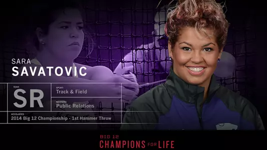 It was 30 minutes before her scheduled interview when Sara Savatovic arrived at Bill Snyder Family Stadium. She'd agreed to sit down with Big 12 Conference correspondent Wendell Barnhouse to talk about her experiences as a student-athlete, and the 22-year-old senior hammer thrower couldn't hide her exuberance.