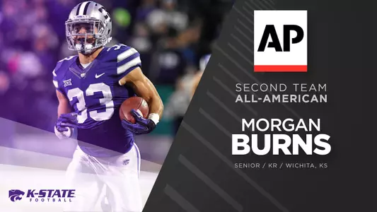 MANHATTAN, Kan. – Kansas State senior kick returner Morgan Burns picked up his fourth All-America designation of the postseason as he was named a Second Team All-American as an all-purpose player by the Associated Press, the organization announced Sunday. It marks the fifth-straight season a Wildcat has been named an All-American by the AP.