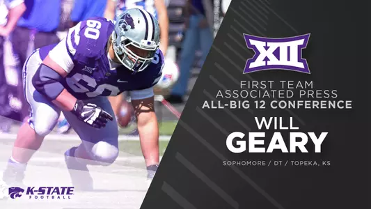 MANHATTAN, Kan. – Paced by sophomore defensive tackle Will Geary on the first team, Kansas State had four football players named to the Associated Press All-Big 12 teams, the organization announced Wednesday.