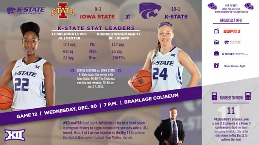 MANHATTAN, Kan. – Kansas State opens its Big 12 schedule on Wednesday night, as the Wildcats host Iowa State at 7 p.m.