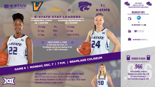 • Entering Monday night’s game, Wesemann has made 14 straight free throws and is 22-of-22 from the foul line in Bramlage Coliseum.