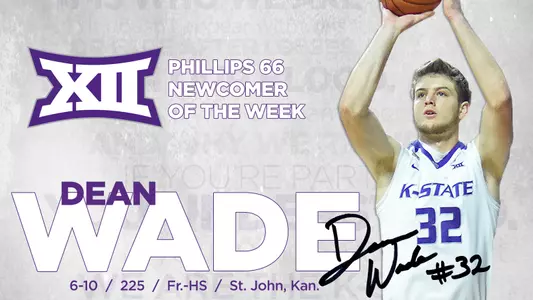 MANHATTAN, Kan. – Freshman Dean Wade was selected as the Phillips 66 Big 12 Newcomer of the Week for the first time in his career on Monday after his impressive effort in Kansas State’s win over Georgia.