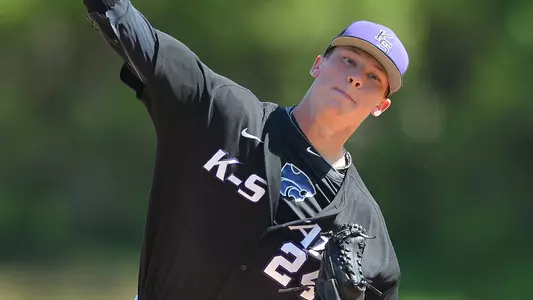 K-State earned its first Big 12 win of the season, beating No. 12 Oklahoma State in the series opener on March 27, but the Wildcats dropped the last 2 games to lose the series to the Cowboys ... In game one, Shane Conlon drove in 3 of K-State's 4 runs while the Wildcat bullpen threw a combined 5.0 shutout innings after starter Colton Kalmus' 4.0 innings of two-run baseball as K-State beat Oklahoma St., 4-2 ... In game two, K-State surrendered 6 two-out runs in the first inning, proving too much for the Wildcats in a 12-3 loss ... K-State was forced to use 5 pitcher in the contest, with each hurler allowing at least one run ... In the series finale, K-State, despite taking a 1-0 lead in the sixth inning when Jake Wodtke scored on a passed ball, was no-hit for 8 1/3 innings as Oklahoma State's MIchael Freeman turned in a complete game to lead the Cowboys to a 4-1 win ... K-State starting pitcher Brandon Courville, making his first career start, allowed one run in 5.0+ innings pitched of a no-decision.