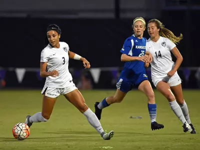 Drake broke a scoreless tie in the 43rd minute of the first half. Linda Fiorito placed a cross into the six-yard box from near the right corner. Tawny Carroll was able to outjump her defender and deflect the pass back towards the right post to give the Bulldogs a 1-0 lead.