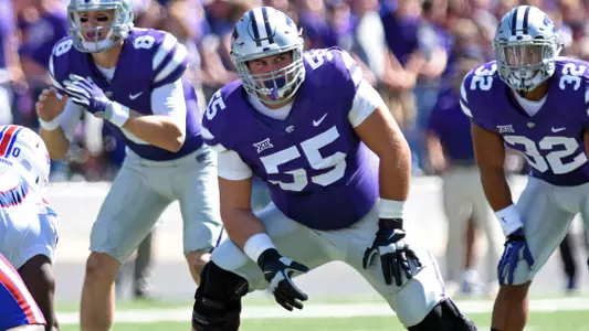 CW: I’m projected as a guard and I played my last two years at K-State as a tackle, so it was kind of surprising to me to see myself at the top of the boards, but I think I’ve shown that I can play both, guard and tackle, and even center. It’s been tough to transition a little bit, but I feel comfortable in both tackle and guard, and I’m starting to feel more comfortable at center now. If I can just keep adding those different elements to my game, I feel like that will only add to my draft stock.