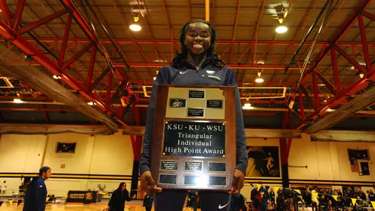 Njadoe won all three of her individual events, which also included the 200-meter dash and long jump, to account for 22.25 points — nearly 10 percent of K-State’s second-place point total.