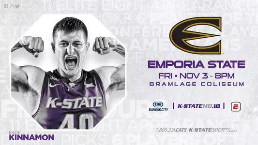 - Kansas State (0-0) concludes its brief exhibition season at 8 p.m., on Friday, as the Wildcats play host to Division II foe Emporia State (0-0) at Bramlage Coliseum. The contest will be part of a basketball doubleheader, as the women's team will play host to Emporia State at 5:30 p.m., with the men's game to follow.