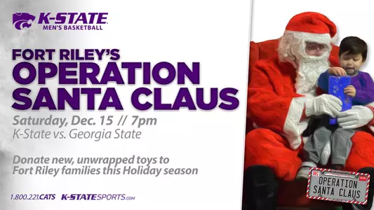 MANHATTAN, Kan. – The Kansas State athletics department will accept toy donations for Fort Riley's Operation Santa Claus at a pair of upcoming basketball games. Fans are encouraged to bring new, unwrapped toys or gift cards to the men's basketball game vs. Georgia State at 7 p.m., this Saturday, December 15 or prior to the women's basketball game vs. Central Arkansas at 7 p.m., Thursday, December 20.