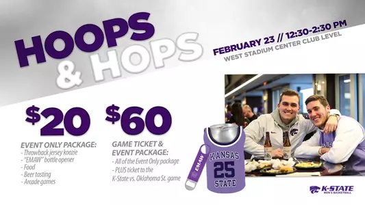 MANHATTAN, Kan. – Back for another year, K-State Athletics is offering a Hoops & Hops ticket package, that includes a game ticket and a pregame beer tasting event, for men's basketball game with Oklahoma State on Saturday, February 23. The event will have a throwback theme this year with the team wearing their fan-favorite lavender jerseys against the Cowboys.
