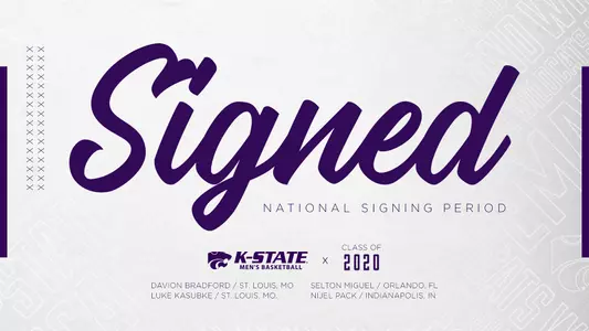 MANHATTAN, Kan. – Kansas State head coach Bruce Weber announced the signing of four prep standouts to highlight the start of the Fall National Signing Period on Wednesday (November 13) with the additions of Davion Bradford (St. Louis, Mo./Mehlville), Luke Kasubke (St. Louis, Mo./Chaminade), Selton Miguel (Orlando, Fla./West Oaks Academy) and Nijel Pack (Indianapolis, Ind./Lawrence Central).