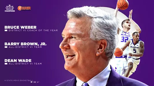 MANHATTAN, Kan. – Kansas State head coach Bruce Weber was selected as the U.S. Basketball Writers Association District VI Coach of the Year, while seniors Barry Brown, Jr., and Dean Wade were each named to the All-District VI team for the second consecutive season, the organization announced on Tuesday (March 12).