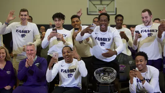 This year, however, the Wildcats were one of the featured teams on the CBS broadcast. The regular season Big 12 Championship trophy was positioned in the middle of the team, seated on its practice floor at the Ice Family Basketball Center when the show began.