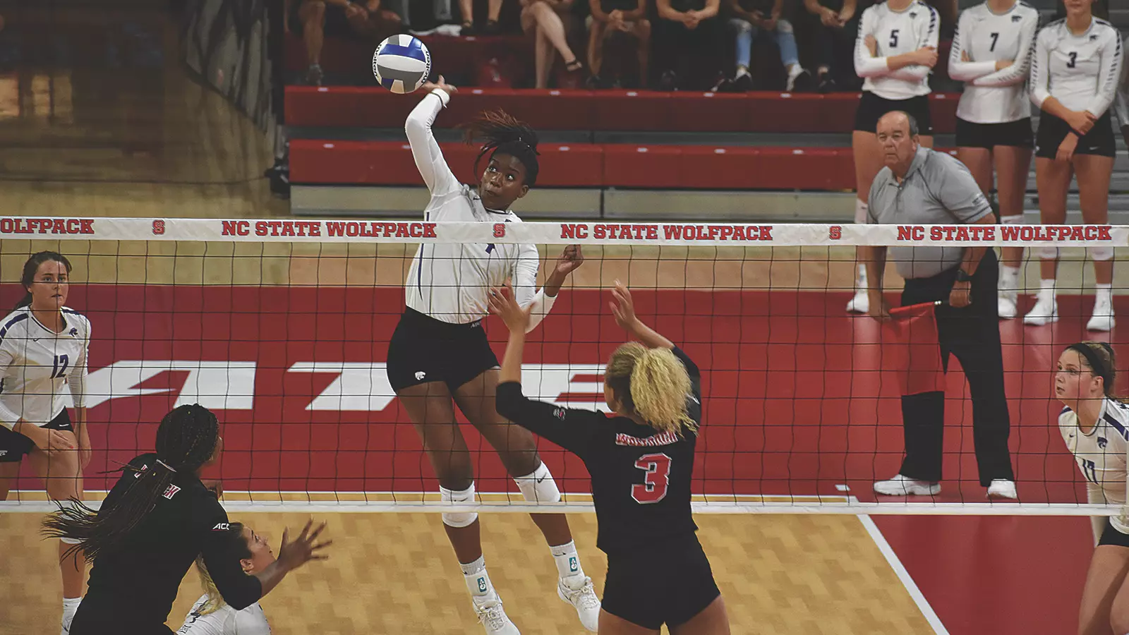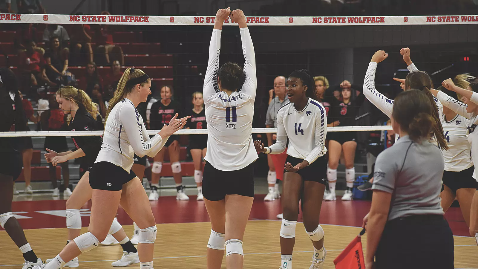 An 11-4 NC State run midway through Set 3 propelled the Wolfpack to a 2-1 match lead. K-State held a two-point edge at 9-7 prior to the spurt. Later in the set, the Wildcats clawed within two points at 19-17 after a 4-1 run before NC State responded with a 6-3 stretch to end the set.