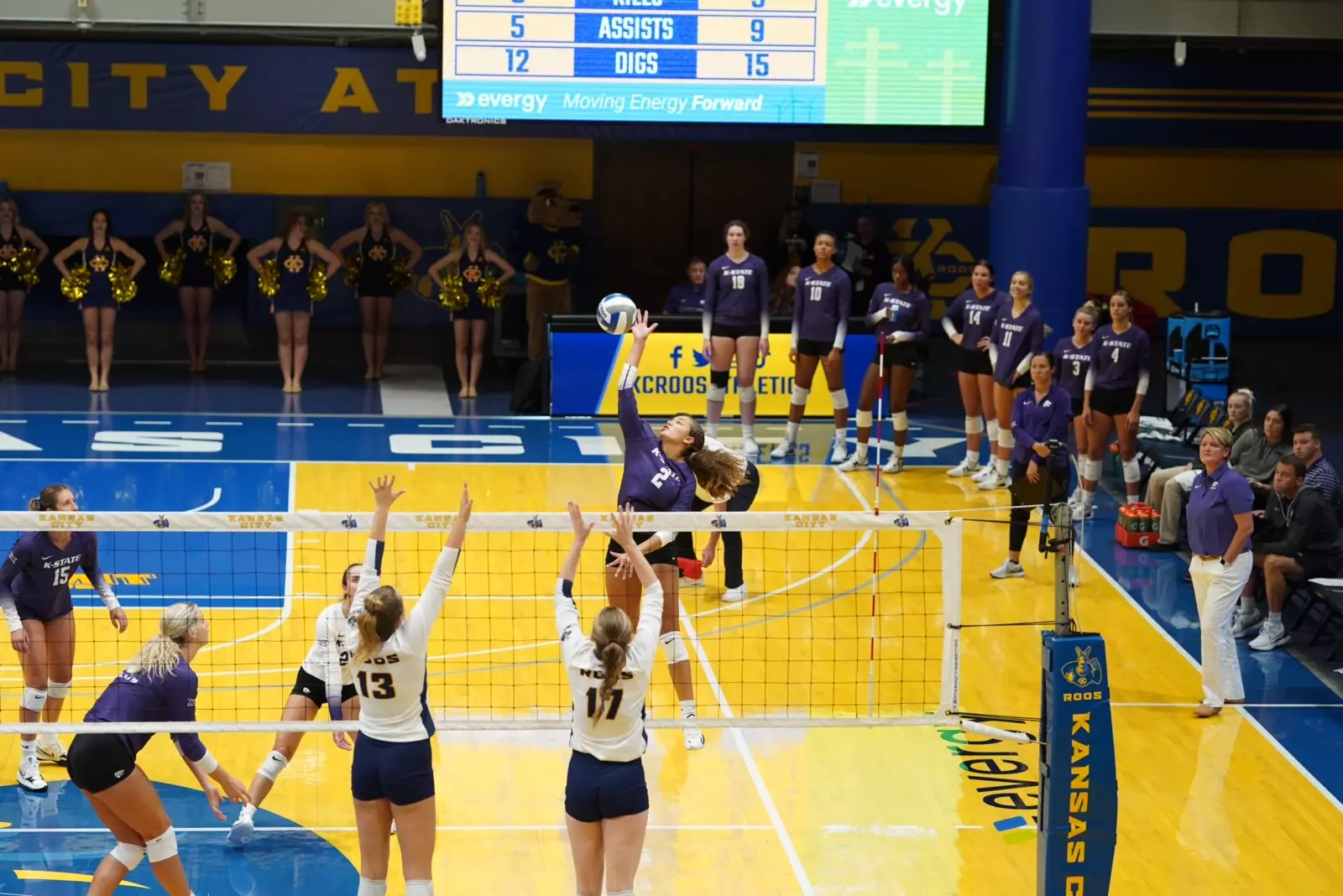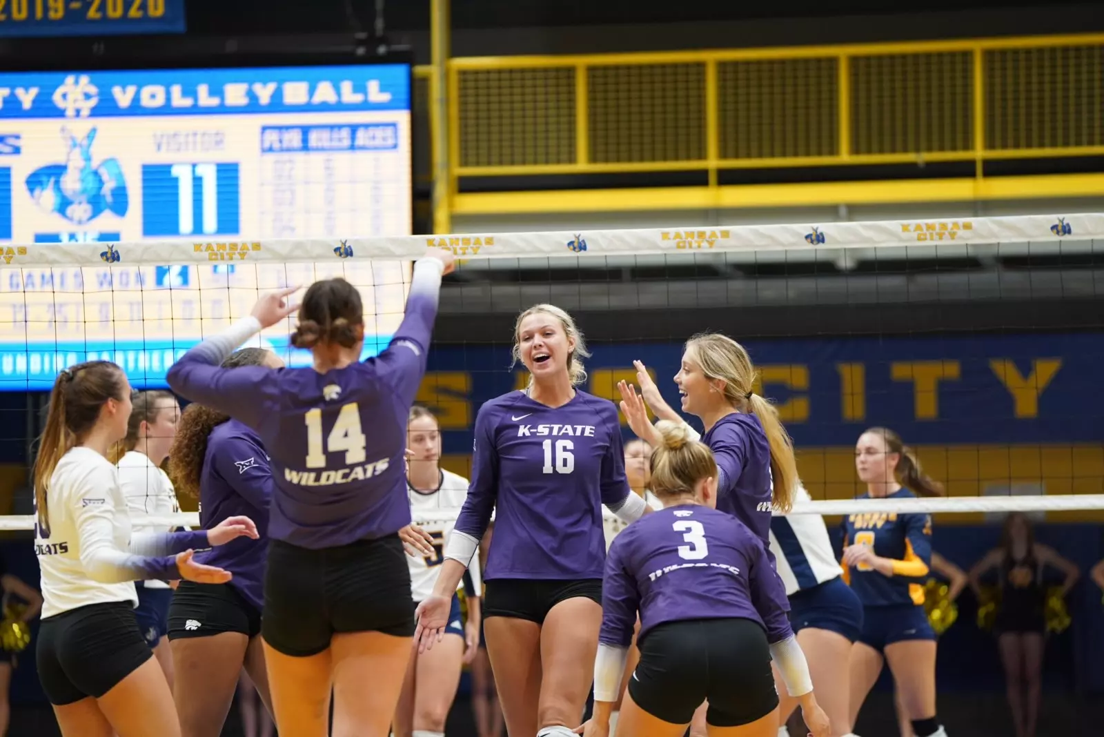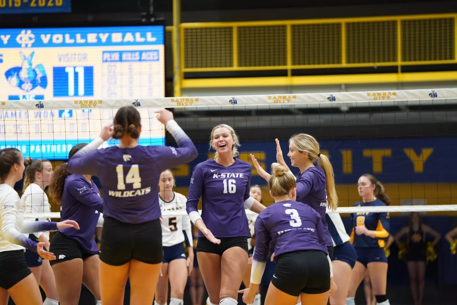 KANSAS CITY, Mo. – K-State picked up 15 total blocks and held Kansas City to a .018 team efficiency Wednesday night, as the Wildcats swept the Roos 25-14, 25-13, 31-29 at Swinney Center.