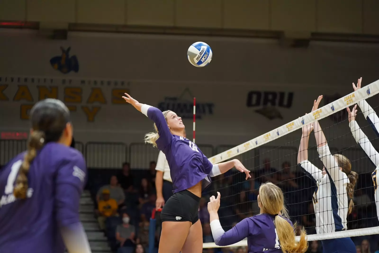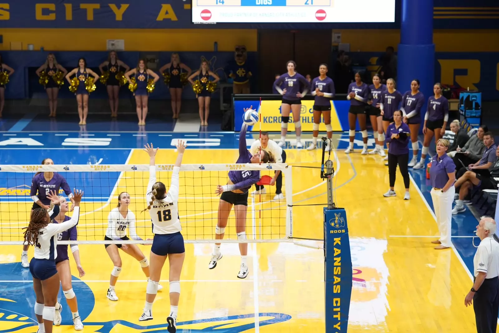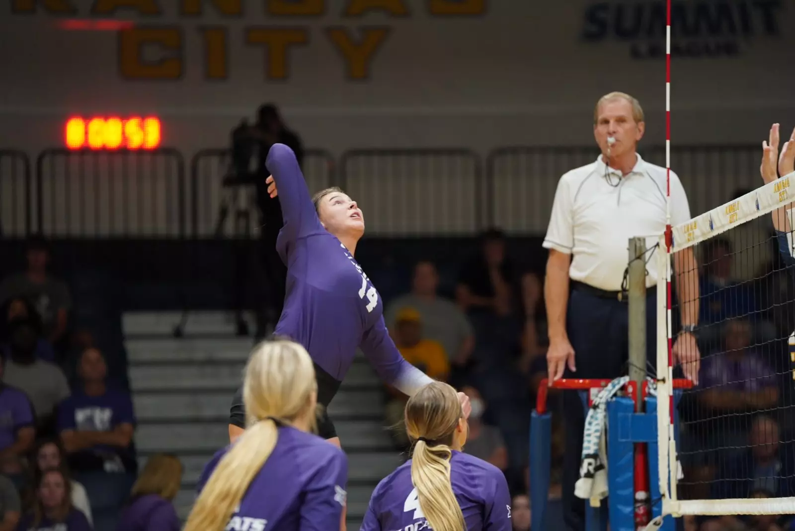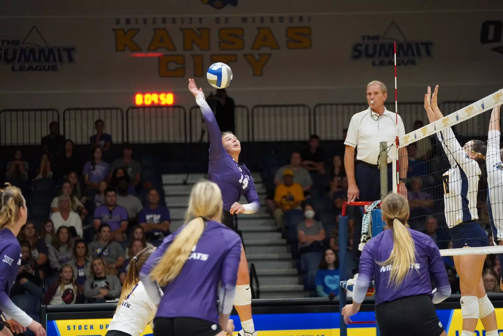 KANSAS CITY, Mo. – K-State picked up 15 total blocks and held Kansas City to a .018 team efficiency Wednesday night, as the Wildcats swept the Roos 25-14, 25-13, 31-29 at Swinney Center.