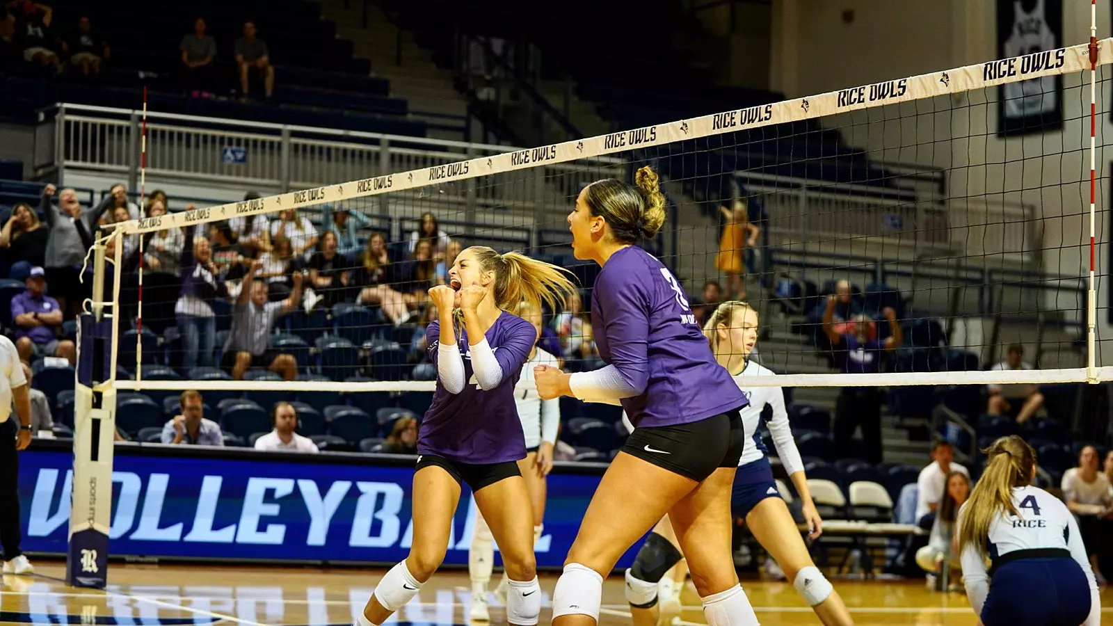 Rice saw four players reach double-figure kills, including 15 at a .522 clip from Anota Adekunle. Sahara Maruska finished with 13, Ellie Bichelmeyer had 12 and Danyle Courtley turned in 11.