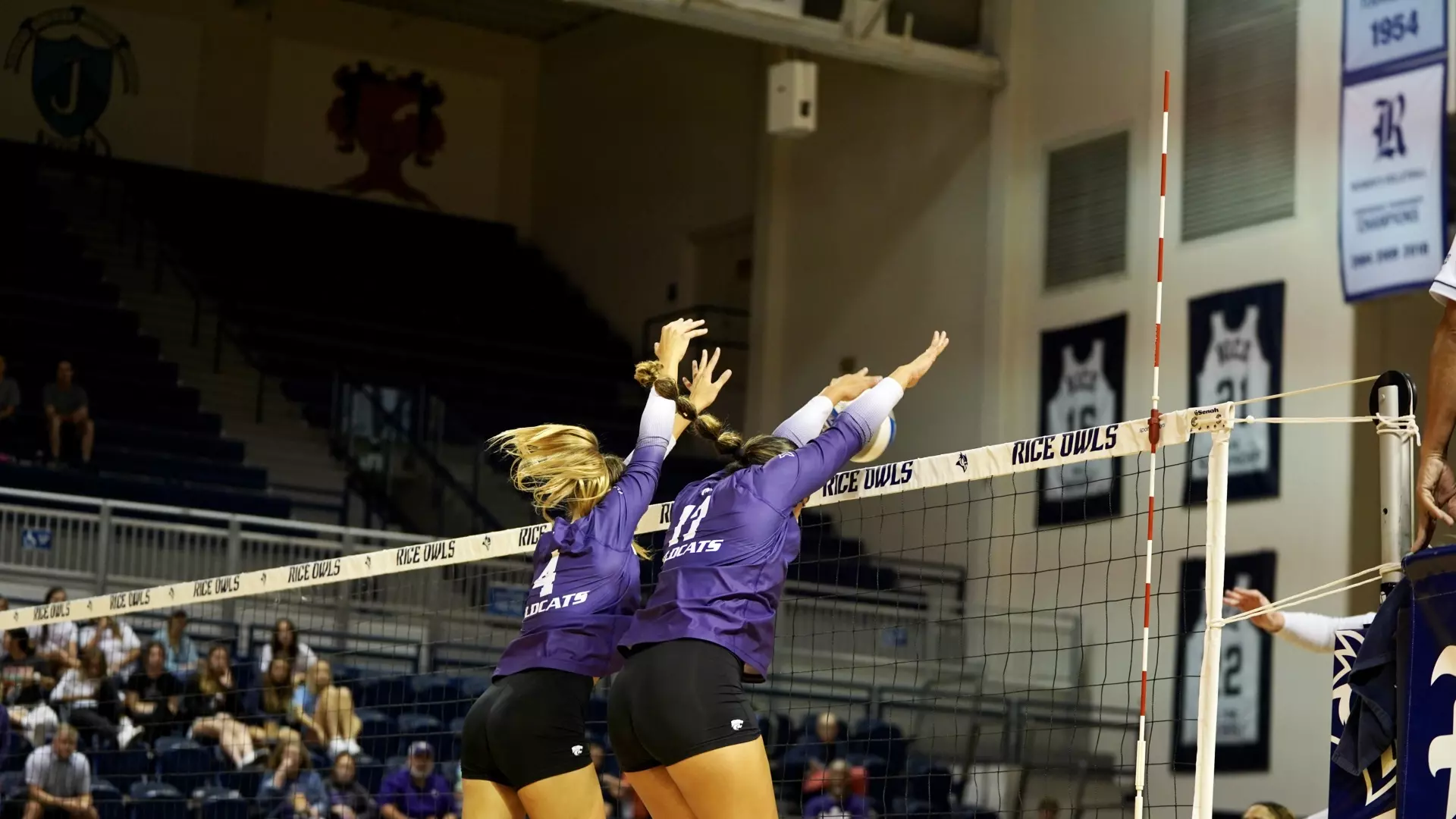 HOUSTON – Three different players finished with a double-double for K-State, but the Wildcats dropped a five-set decision at Rice to open the Rice Adidas Invitational Friday night at Tudor Fieldhouse, 25-20, 26-24, 21-25, 18-25, 13-15.