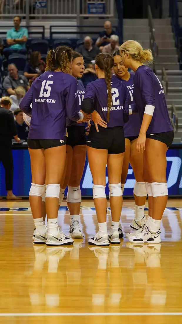 K-State withstood 16 tie scores and four lead changes for a deuce-set victory. With the Wildcats leading 18-17, the sides then alternated 12 consecutive points before back-to-back kills from Warner gave K-State its first set-point try at 24-23.