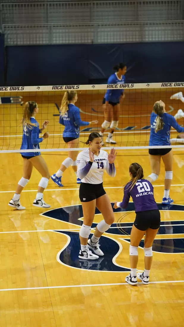 HOUSTON – In its first matchup with a top-25 team, K-State was unable to produce the upset, as No. 17 Creighton came away with a four-set victory at the Rice Adidas Invitational Saturday at Tudor Fieldhouse, 16-25, 22-25, 25-13, 19-25.