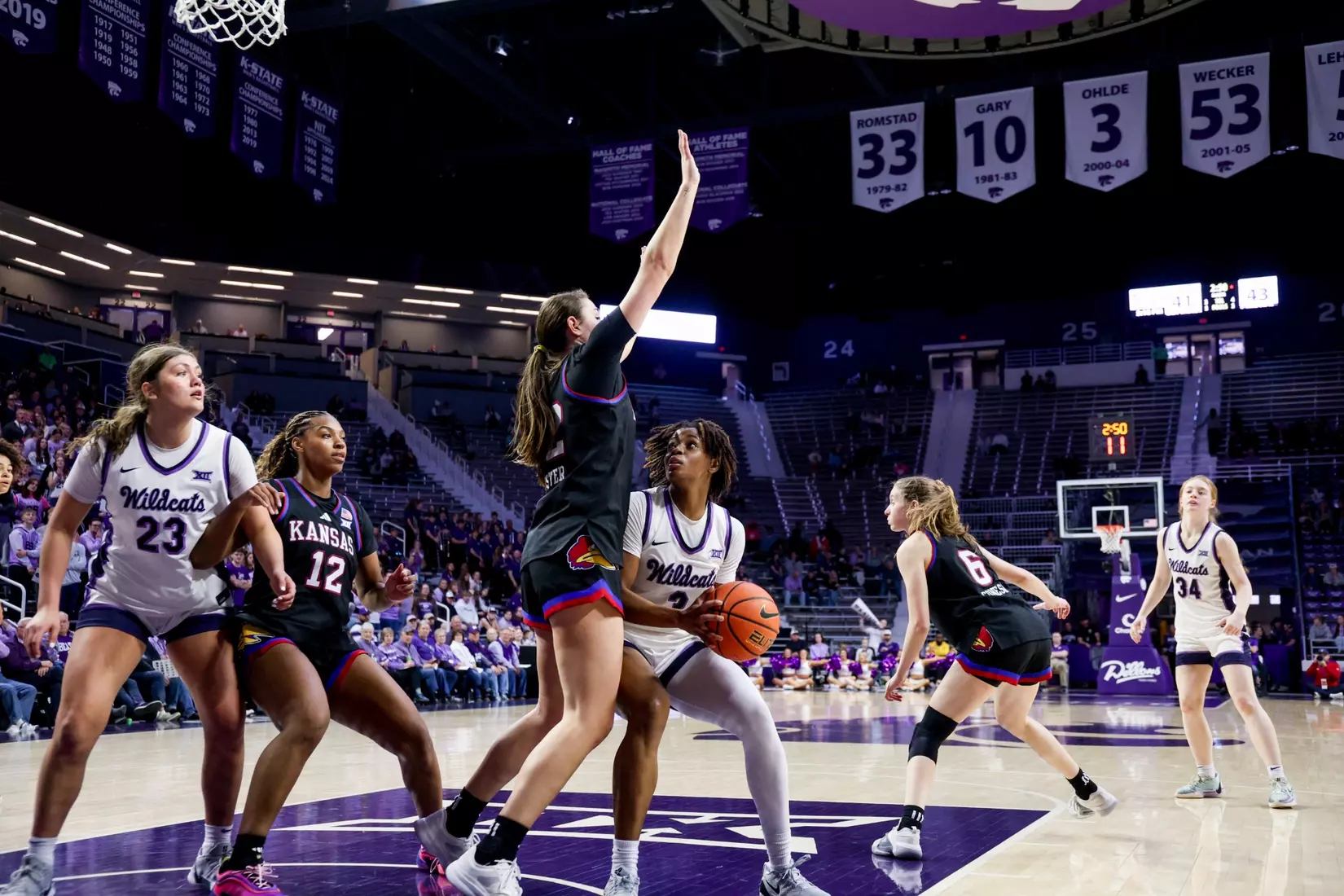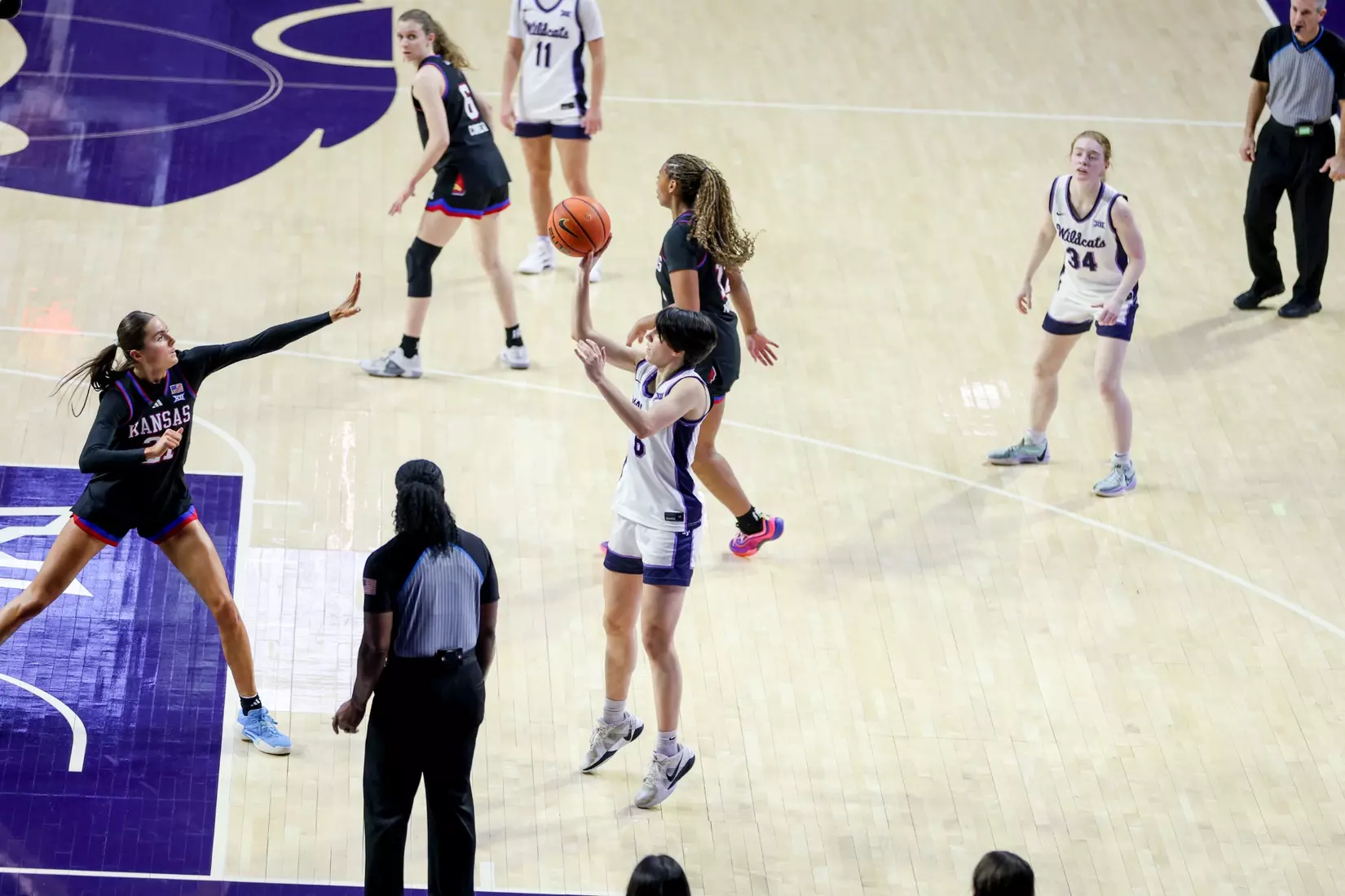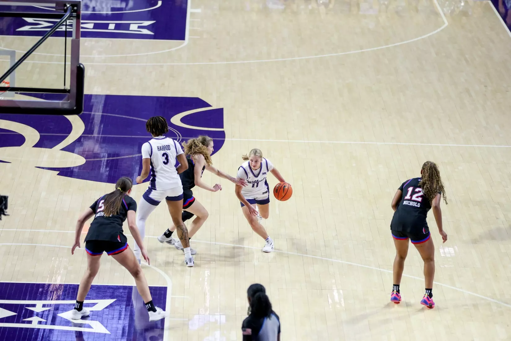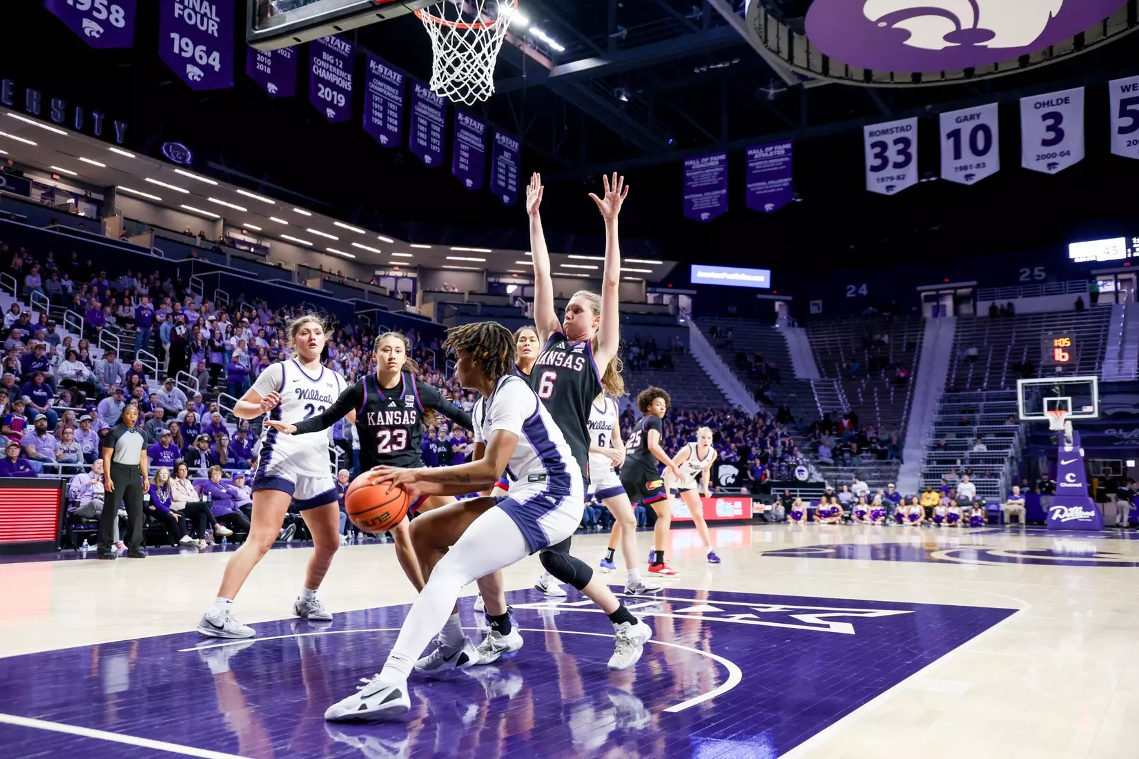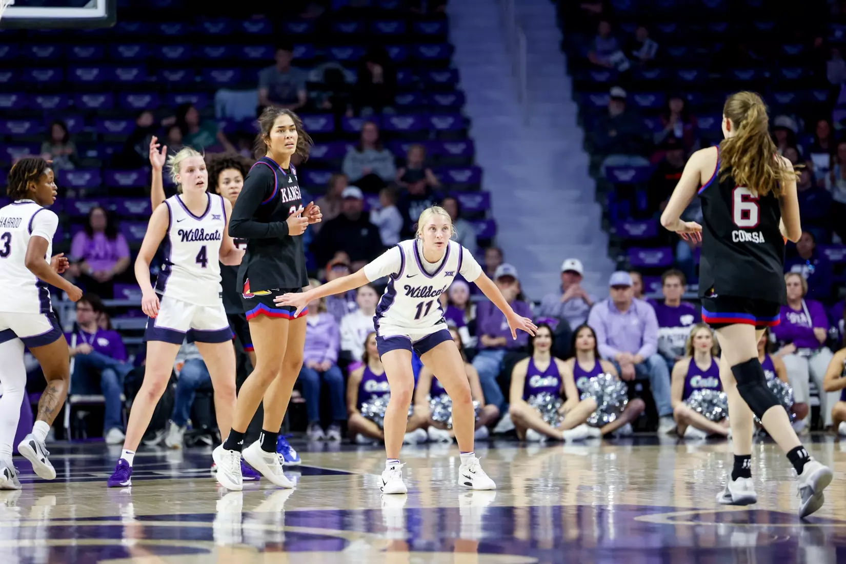 "We played more man to man. We played a little more zone there. Played more man to man this game. Offensively, we were ready for them to really do a better job on [Taryn Sides]. We were going to try to free her up a little differently. This time, we had trouble getting her looks. They did an excellent job on her. We did get some back doors with her in a couple stretches, but those would be the two biggest things that offensively, we tried to get a little more attack from the elbows. We were average offensively today. We needed to be better. KU is a really good offensive team. We needed to be able to match that and we just weren't able to."