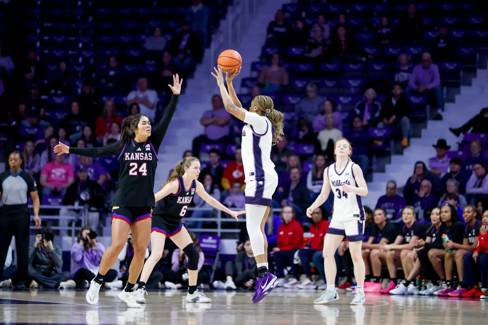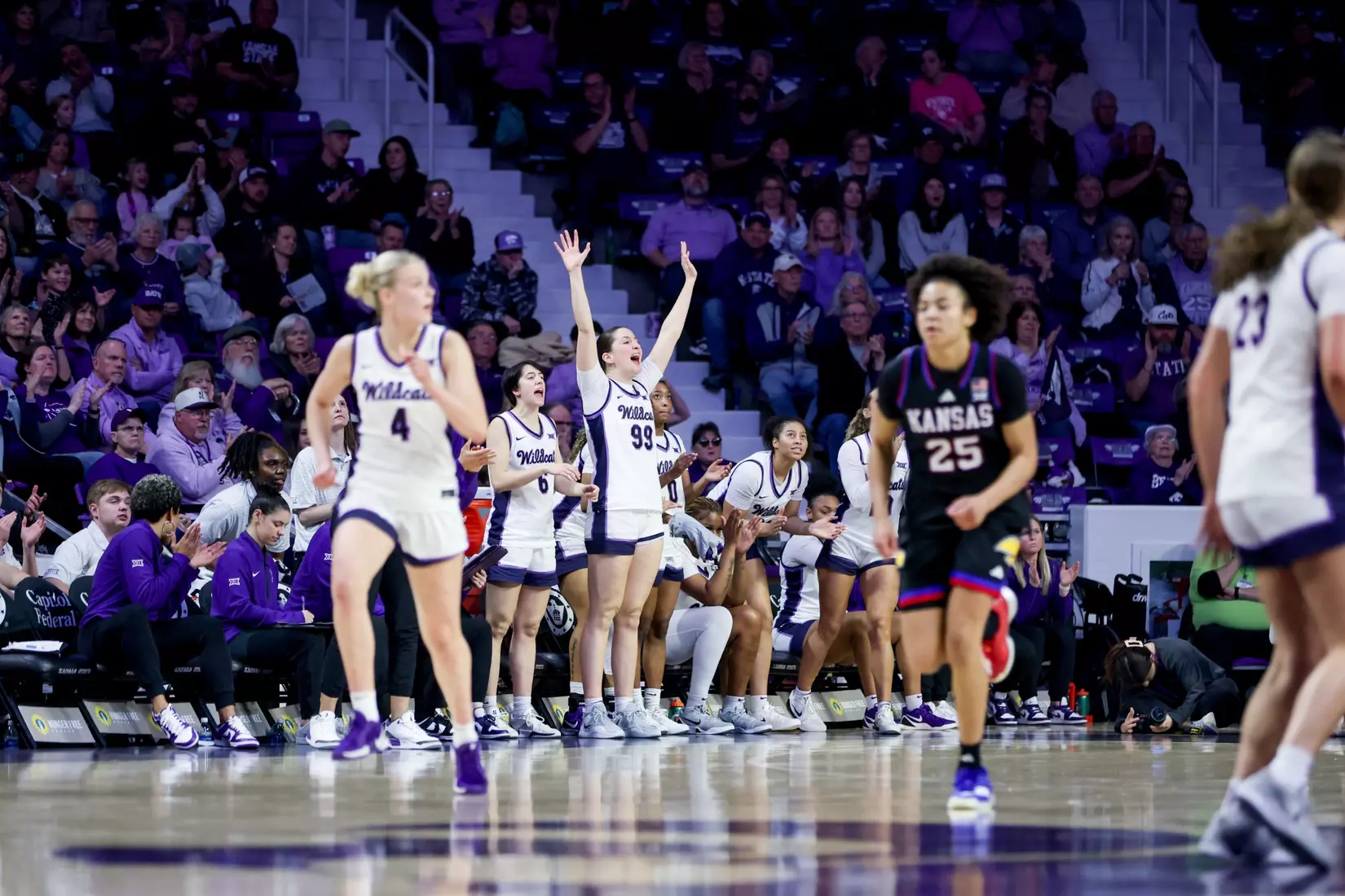 - The game was tied five times in the third quarter, as Kansas captured a 48-47 lead entering the final quarter on the strength of a 9-of-11 effort from the free throw line. The Jayhawks made two field goals over the final 8 minutes of the quarter. The Wildcats were paced in the frame by Brandie Harrod with six points.